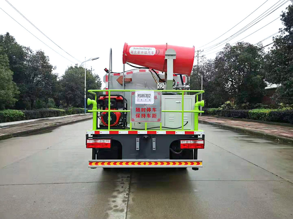 1.具備灑水車所有功能,前沖(噴)后灑,帶側(cè)噴花灑,罐體后帶工作平臺,平臺上安裝綠化灑水高炮,炮可全方位360°旋轉(zhuǎn),可連續(xù)調(diào)成直沖狀、大雨、中雨、小雨、毛毛雨,帶安全護(hù)欄,配備專用大功率灑水泵,泵可抽水排水,吸程≥7m,灑水寬度≥15m,灑水炮射程≥20m,帶消防接口和自流閥,隨車選裝20米綠化卷盤,緊急時(shí)可抗旱運(yùn)水和消防使用。