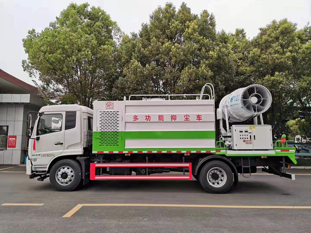 1. 【性能簡介】多功能抑塵車主要用于城市空氣凈化、園林農藥噴灑、抑塵降霾、防疫消殺消毒、公路或竟賽場地的養護、保濕、降溫。可配置30米遠程噴霧機,配套動力功率8.5Kw,風機功率3Kw,水泵功率2.2Kw,風機噴頭數量16個,風機水平射程≥30m,風力強勁,水霧均勻,霧炮可全方位360°旋轉。